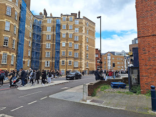 For sure, no buses getting through these streets. I couldn't figure out whether most of the people were following the runners, or just having to walk for the Tube, as I was, what with no buses! (Saw one runner being stretchered off, wrapped in one of those reflective blankets.) Predictably, London Bridge was mobbed as well - and wouldn't you know it, of course my card started giving trouble as I finally got to the barrier. I had to let the person behind me through - mine worked after that. Technology..!